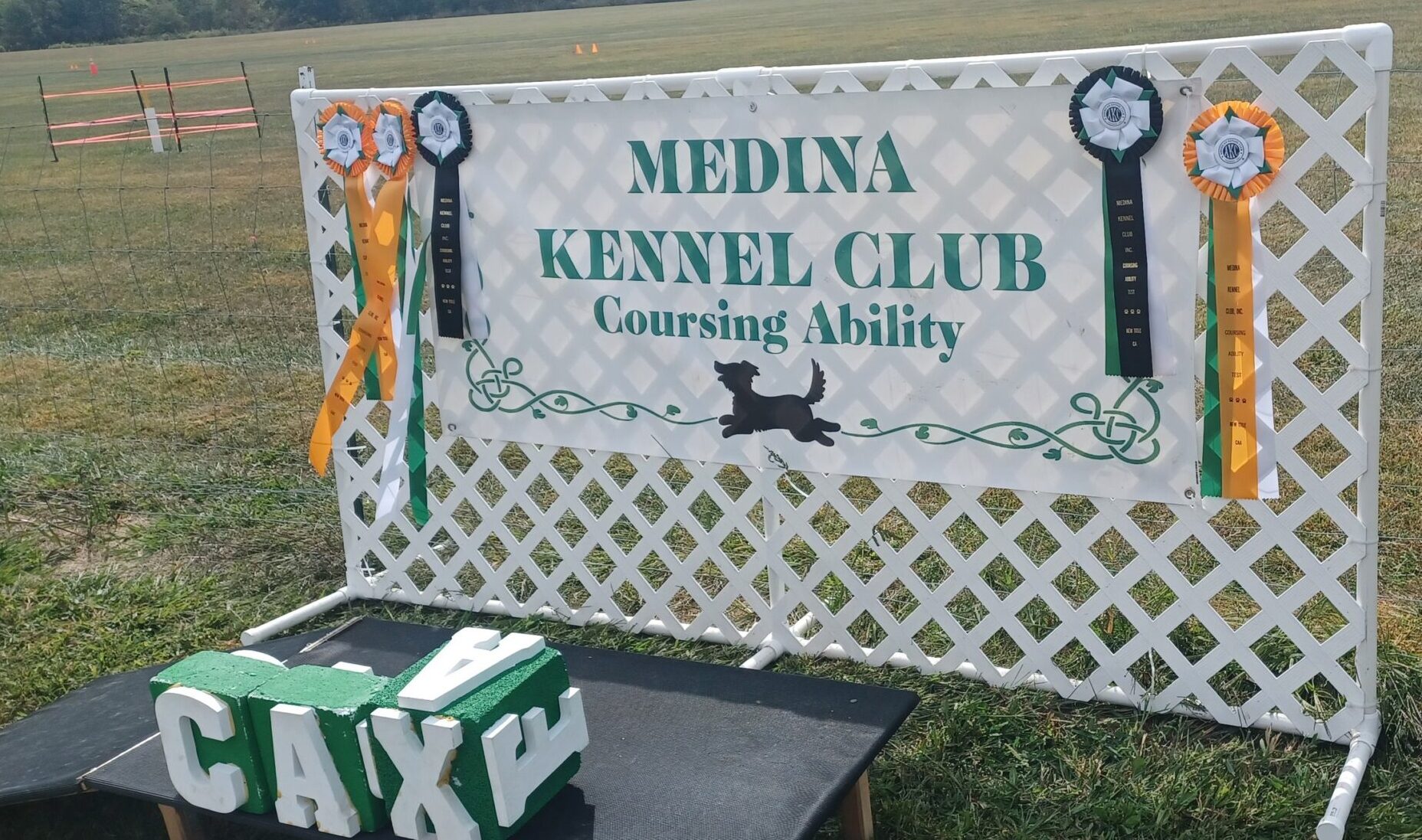 The Coursing Ability Test (CAT) is an introductory event fashioned after the sport of lure coursing. It tests a dog’s basic coursing instinct or hunting-by-sight ability. The dog chases an artificial lure, and the test is a non-competitive pass/fail event with dogs running one at a time. To pass the test, a dog running alone must pursue a lure, completing the course with enthusiasm and without interruption within a given time. Most dogs will happily go after the lure! The CAT provides a lively and healthy activity attractive to many dog owners.